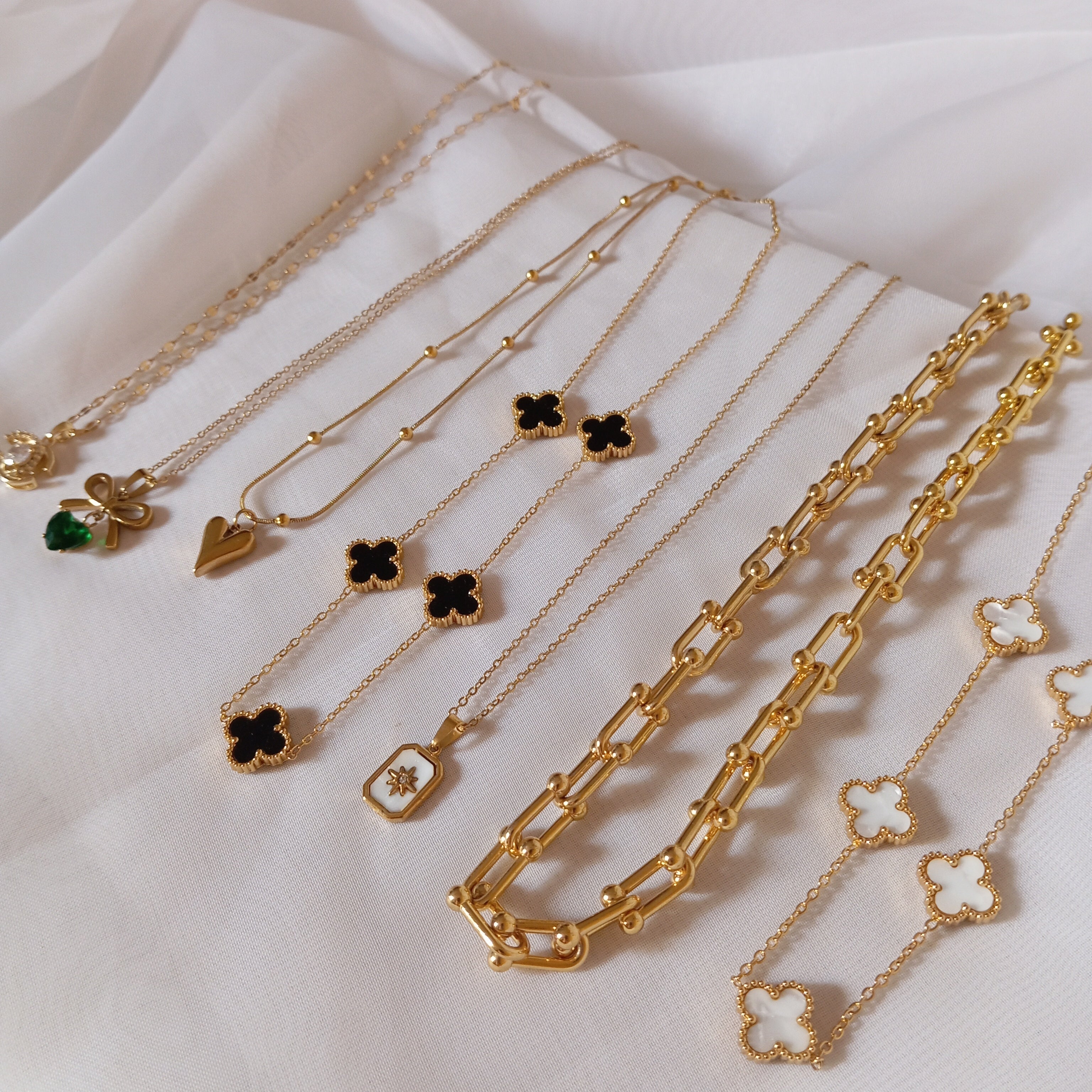 Black double sided 5 Clover Necklace